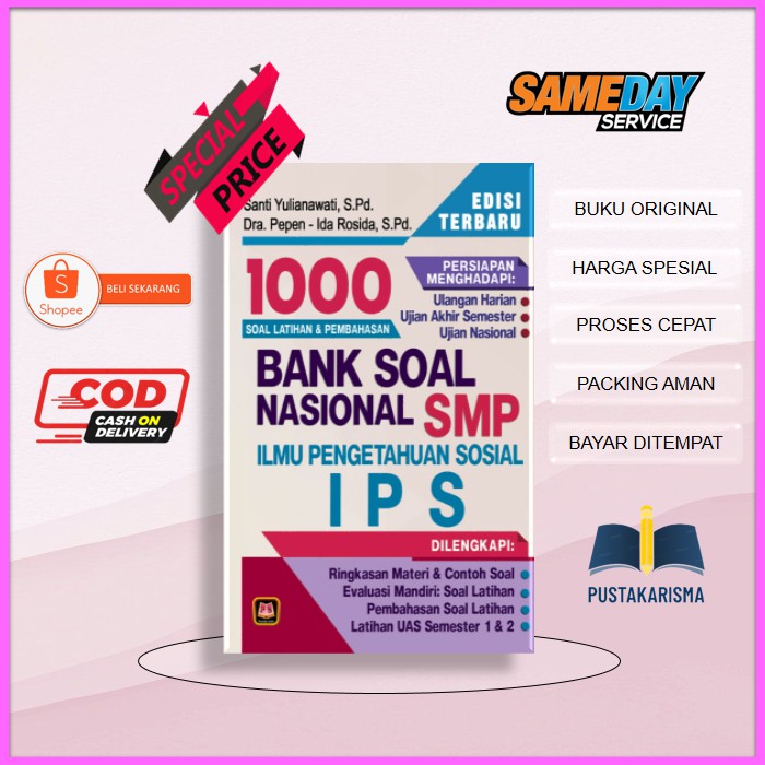 Buku 1000 bank soal latihan pembahasan ips smp mts edisi terbaru.