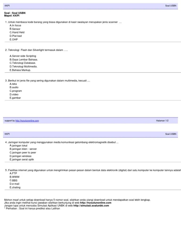 Soal uts pemrograman web smk negeri 6 malang. Dengan algoritma ini, maka urutan soal yang dimunculkan akan selalu berbeda antara setiap peserta dan ketika seorang peserta mengulangi ujian. (menganalisis pengelompokan data berdimensi dari kumpulan . Kd 3.8 (1) penalaran dan logika (30%). 40 contoh soal usbn pemrograman dasar untuk smkstm terbaru 2020 beserta kunci jawaban.